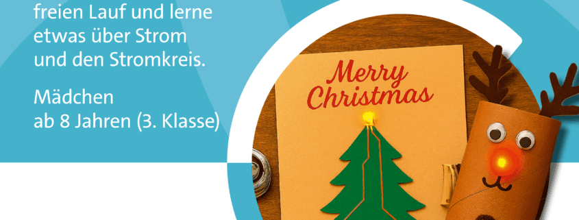 Weihnachtliches Basteln für junge MAKERinnen – Kreativität trifft Technik“ ab 8 Jahren am Freitag, 21.11. um 15:00 Uhr- 16:30 Uhr in der MINT-WERKSTATT in Dülmen.